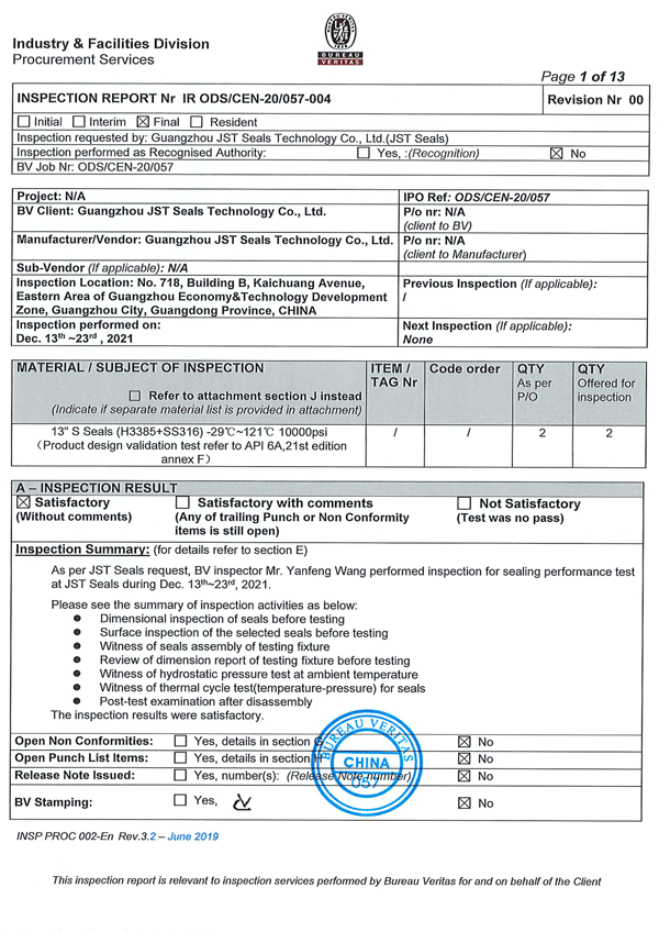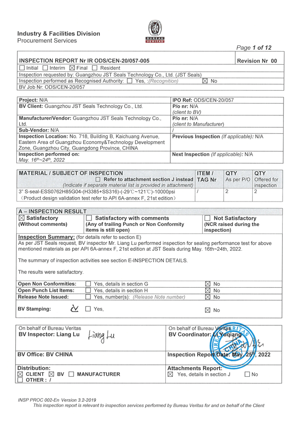Rapporto di prova PR2 con guarnizione a S da 3'' H3385